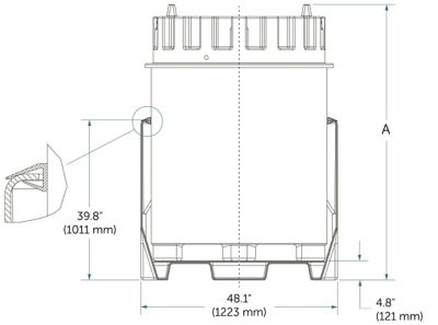 RM1200(X) | 1200 liter IBC with base pallet | 2223 mm (87.5") | |